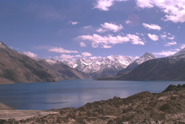 Fig. 3: The dam-lake at the crest of the new formed landslide dam cross the Yigongzangbu river (Photograph by Zhu Pingyi)